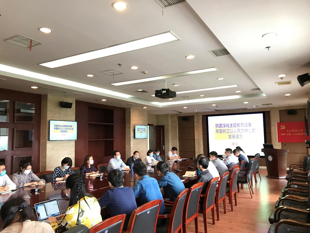 429日,胡俊副校长为教师工作部、人力资源部党支部讲党课,以“巩固深化主题教育成果,牢固树立以人民为中心的发展理念”为题与党员同志进行了交流分享。党课由党支部书记李斌主持,党支部全体党员参加学习。