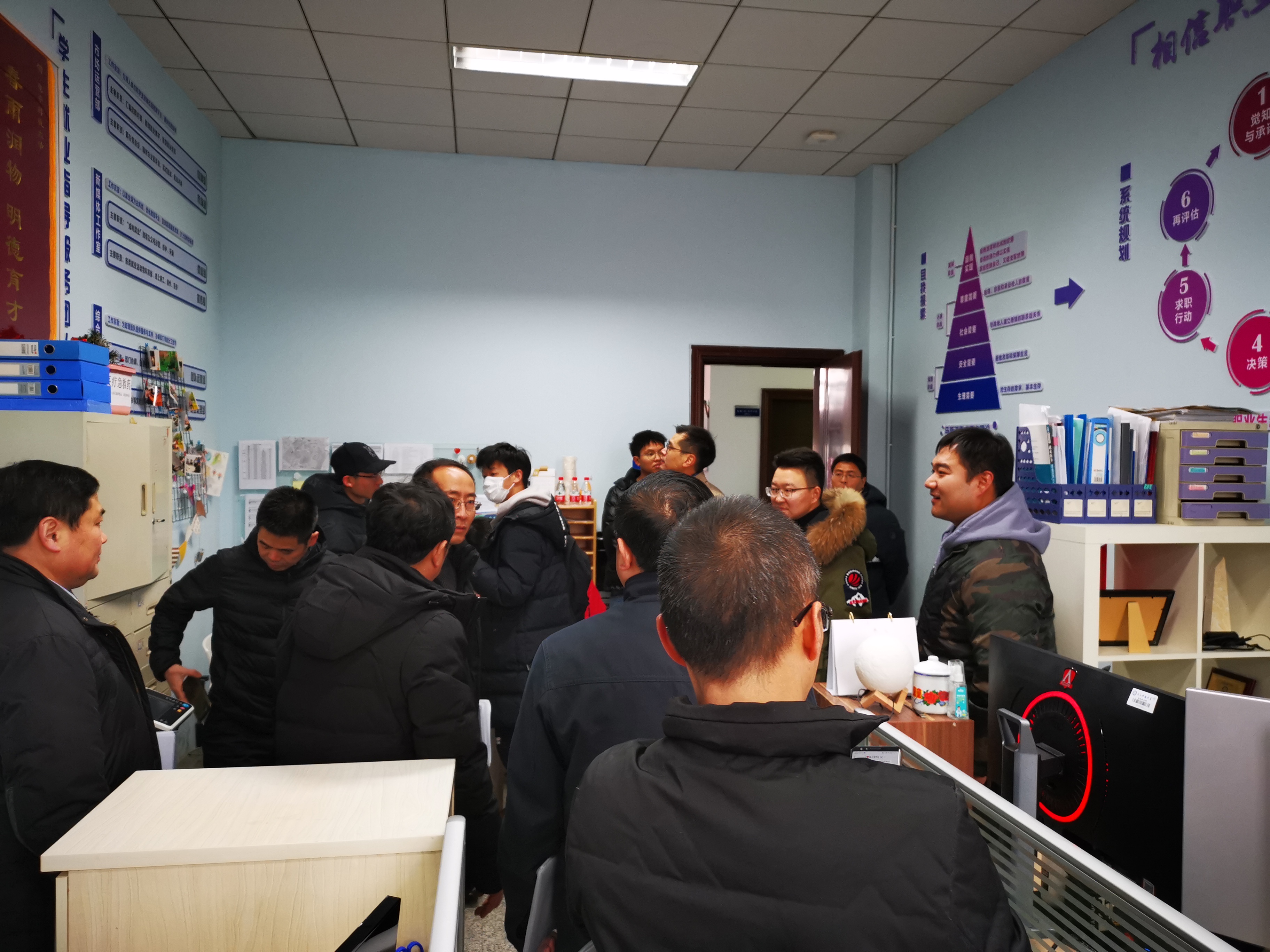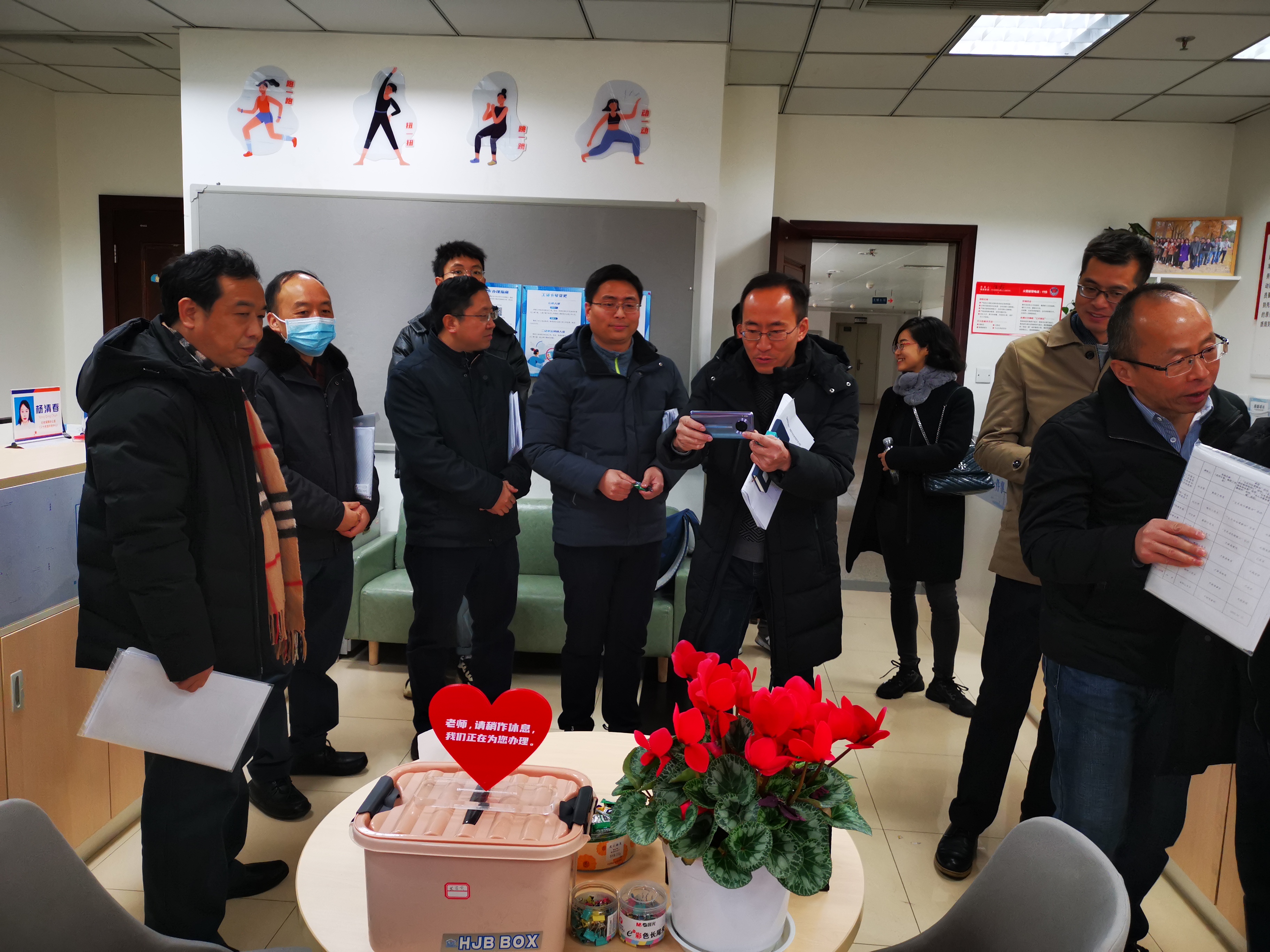 听取汇报后,由机关党委委员、职能部门领导、教师代表、学生代表组成的22人考评组对各创建窗口进行了实地考察。并就创建工作进行了讨论、测评。