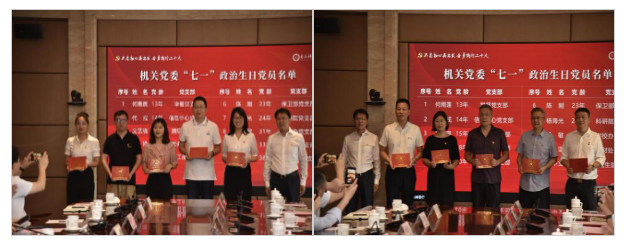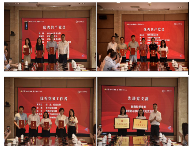 与会领导分别为教务处党支部和发展规划与学科建设处党支部,学生工作部党支部傅秋如等10名优秀共产党员,纪委办、监察处、巡察办党支部黄飞凯等5名优秀党务工作者颁奖。
