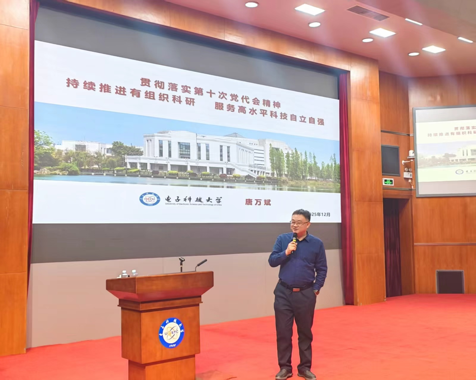 12月4日,机关党委、教发中心举办的学校第十次党代会精神宣讲暨“机关学堂”科级干部培训第八期在清水河校区经管楼报告厅举行。科学技术发展研究院唐万斌院长以“持续推进有组织科研,服务高水平科技自立自强”为题作报告。报告分析了国内外科研发展的局势和趋势,结合党代会精神,介绍了学校的科技发展规划和任务目标。